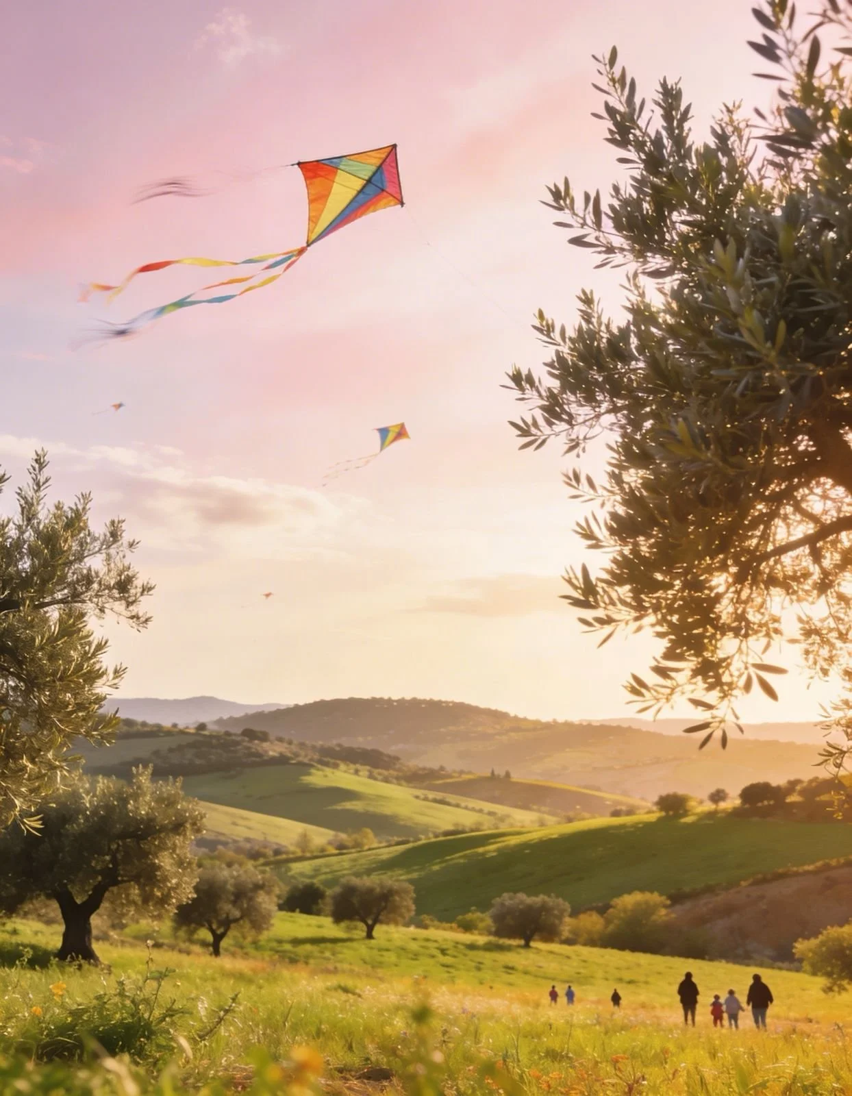 Families head outdoors for picnics, flying kites and tables fill with: Lagana (unleavened bread), olives, tahini, taramosalata, fresh vegetables and halva (tahini-based dessert).