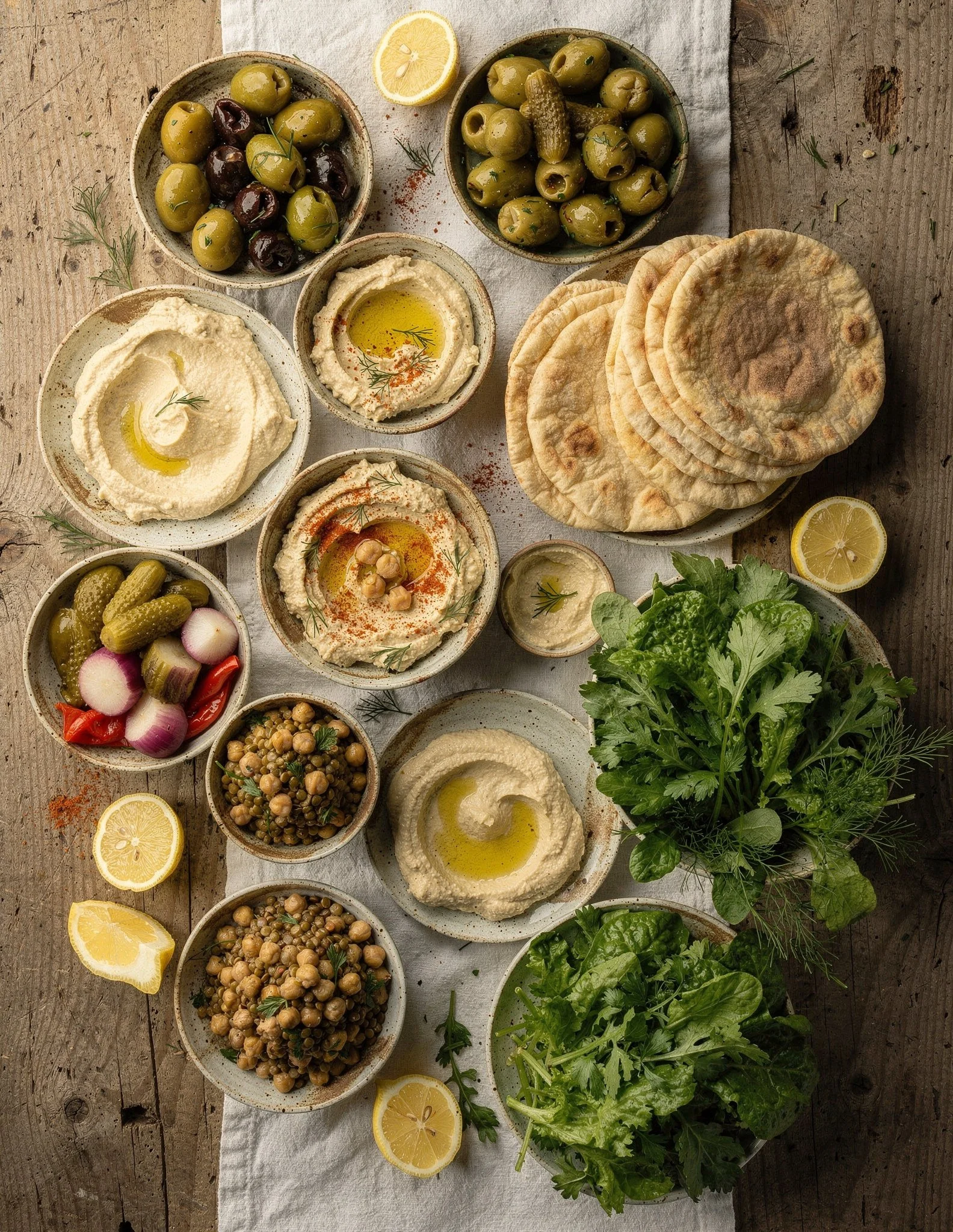 What’s on the tables? Mujadara (lentils and rice) or its Cypriot equivalent Fages, spinach pies, along with Hummus, other legumes, stuffed vegetables, olive oil-rich dishes as well as simple breads.