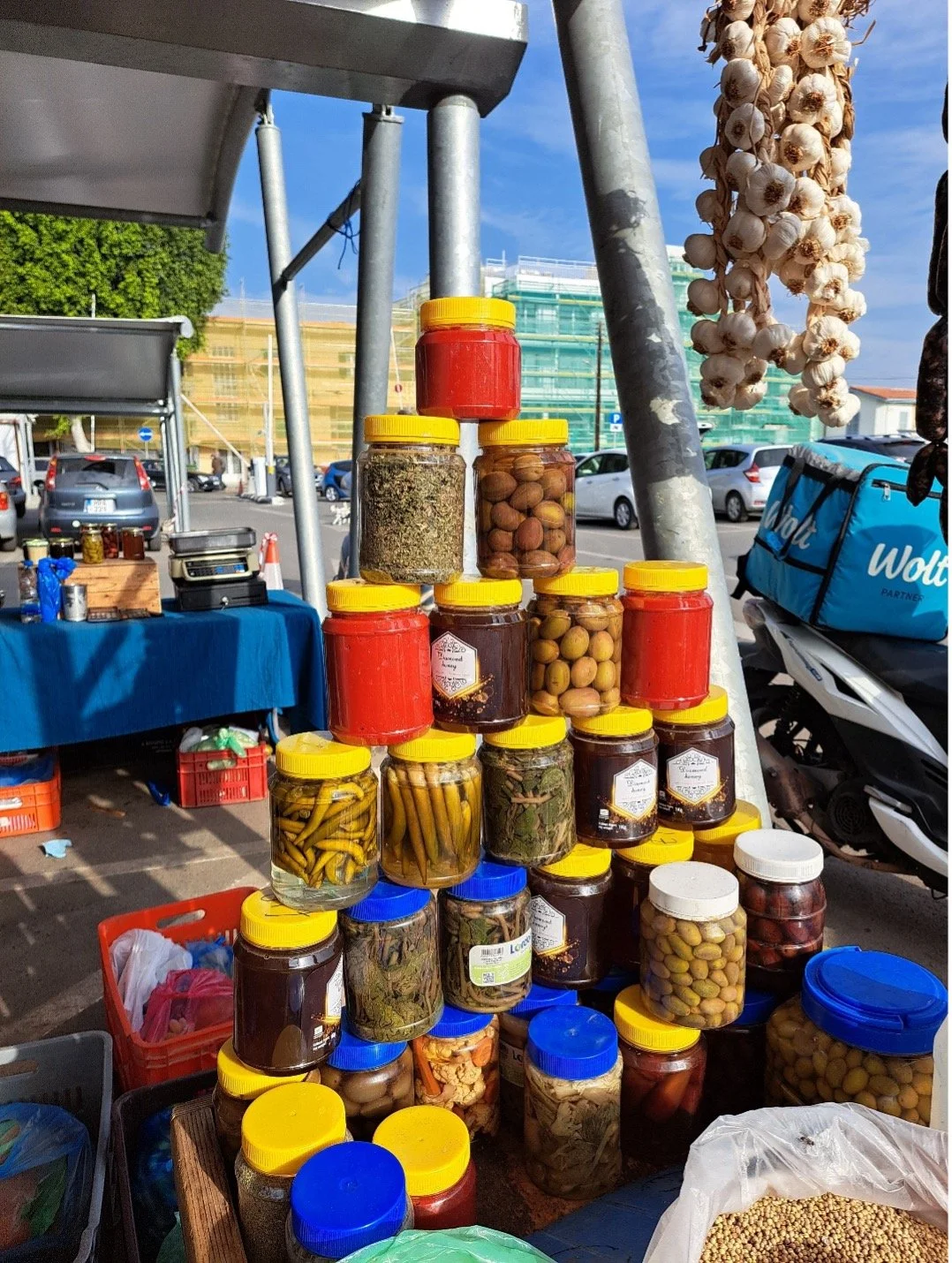 Handmade local products at the fruit and vegetable market in Nicosia.