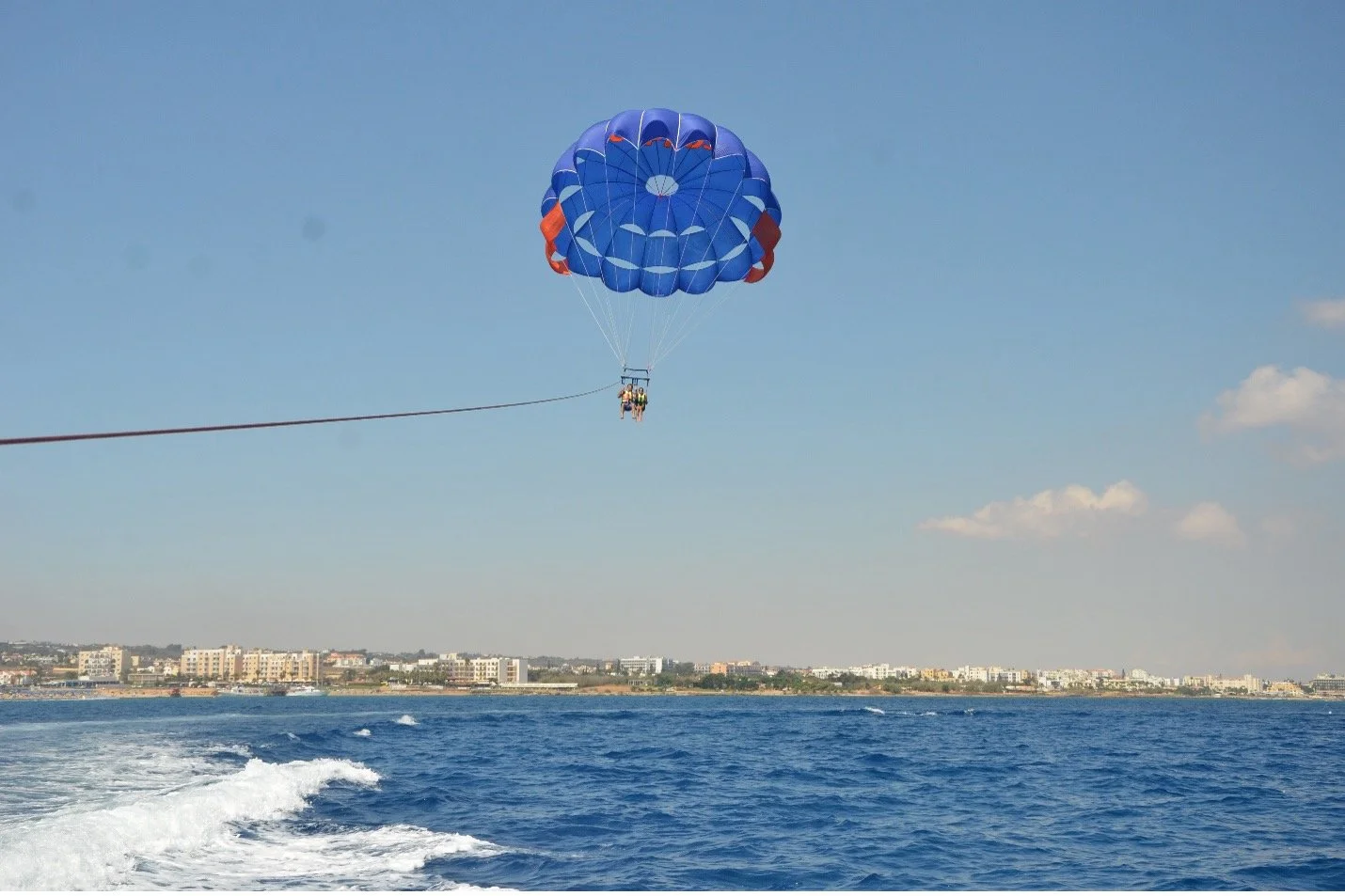The popular parasailing water sport found on most beaches in Ayia Napa and Protaras giving stunning views of the coastline.