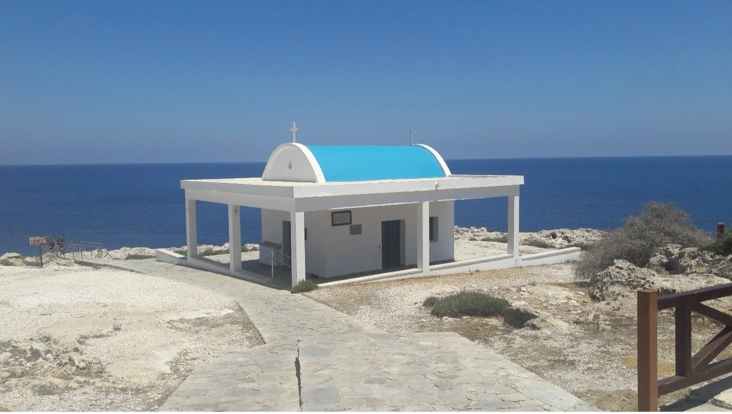 Ayioi Anargyroi Chapel overlooking the sea caves in Cape Greko at the edge of Ayia Napa, dedicated to Saints Cosmas and Damian (“Anargyroi”- meaning “without money”).