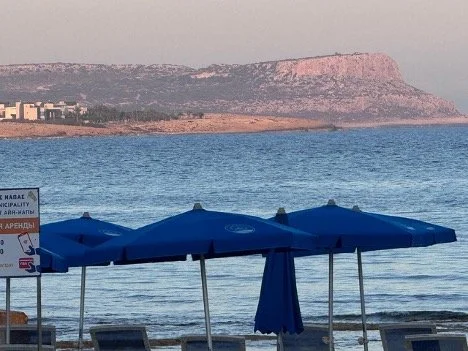 Cape Greco seen from a beach in Limanaki area in the heart of Ayia Napa in summer 2025.