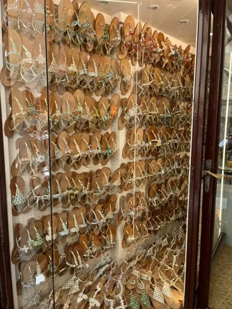 Sorrento sandals as displayed in a shop in the touristic area.